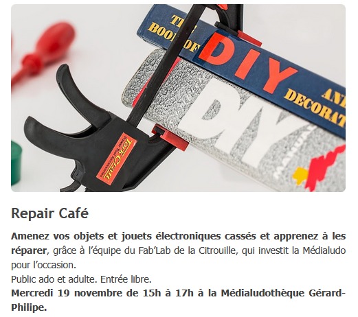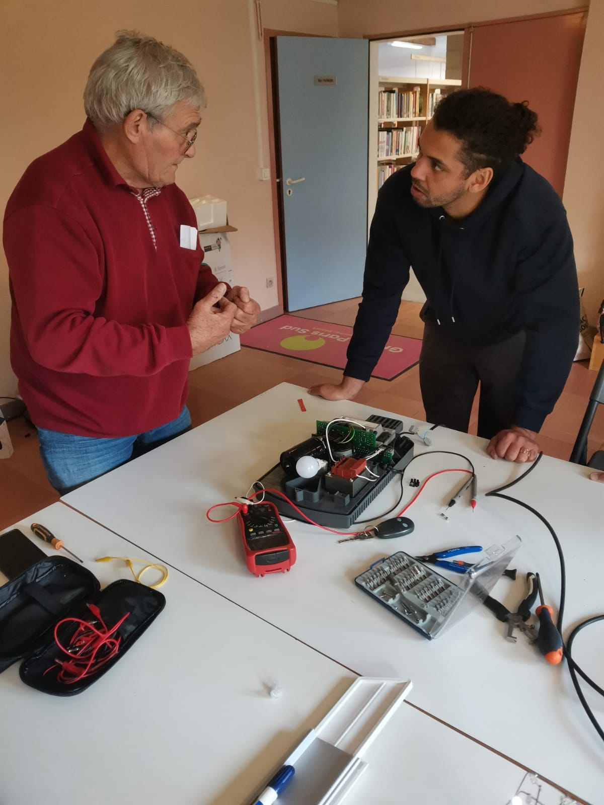 Ce mercredi 8 octobre 2025, les deux Patrick, le jeune Éden, avons organisé une action repair café à la bibliothèque de Vert-Saint-Denis. Nicolas de la bibliothèque de Cesson.