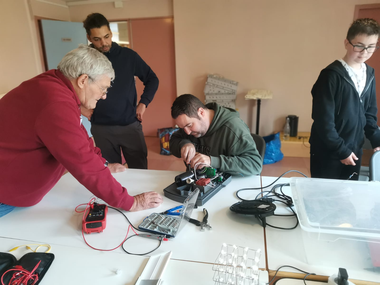 Mervin, Alexandre, Karene et Eva de VSD ont apporté leur objet à réparer :vélo, moteur de porte de garage, Nintendo, cafetière. 50% de réussite et le reste en panne trouvée néanmoins non réparable.