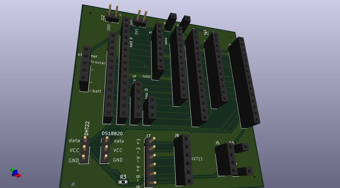Le PCB intègre un circuit pour connecter un module de recharge d’un accumulateur via un panneau solaire. Cette fonctionnalité est particulièrement utile pour des installations autonomes en extérieur, comme des capteurs environnementaux ou des systèmes de surveillance.