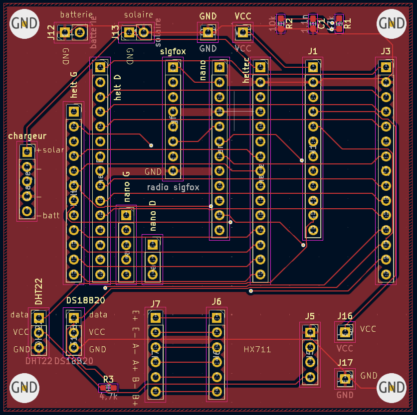 - Les empreintes pour les modules (Arduino Pro Mini ou HTCC-AB02).