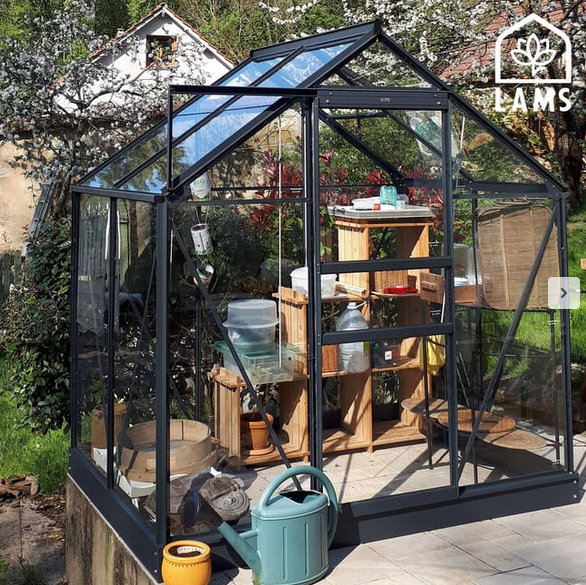 Serre en verre trempé 3 mm Lams ALLIUM – 2,50 m² – avec base – Aluminium laqué anthracite
