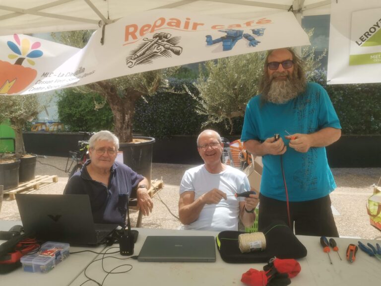 Ce fut l’occasion de faire de belles connaissances et d’assumer notre contrat de partenariat. En effet, Leroy Merlin a aidé la MJC Centre Socioculturel à hauteur de 3000€ en dons d’argent et en nature. En contrepartie, c’est avec plaisir qu’on aide à diffuser l’esprit d’économie circulaire en animant un repair’café nomade. Merci au soutien de René Anne Lise et Bernard.